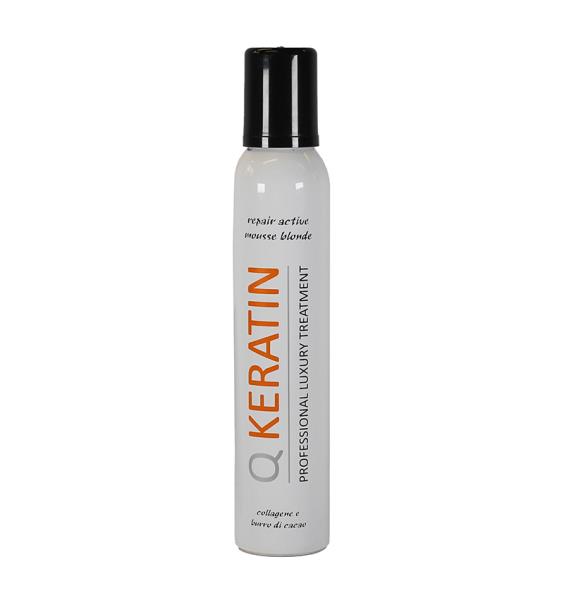 Mousse di ultimissima generazione formulata con principi attivi fortemente ristrutturanti, come il collagene (proteina che conferisce resistenza ed elasticita'), il burro di cacao (potere levigante ed emolliente), ed un blend di ingredienti ad ampioi potere ristrutturante.Dona elasticita', nutrimento, morbidezza, lucentezza, ristruttura, preserva la perdita del colore, non appesantisce, adatta al capello riccio e crespo.La versione BLONDE ha potere antigiallo. Applicare prima dell'asciugatura.